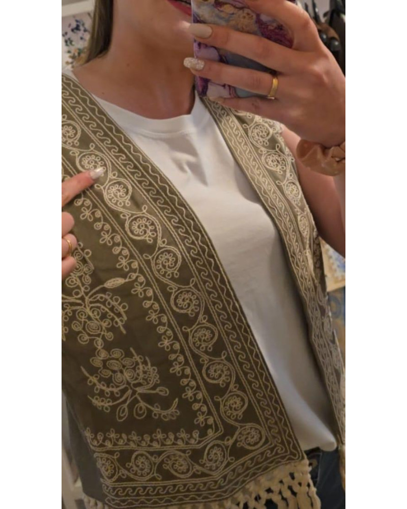 Chaleco verde caqui con bordado